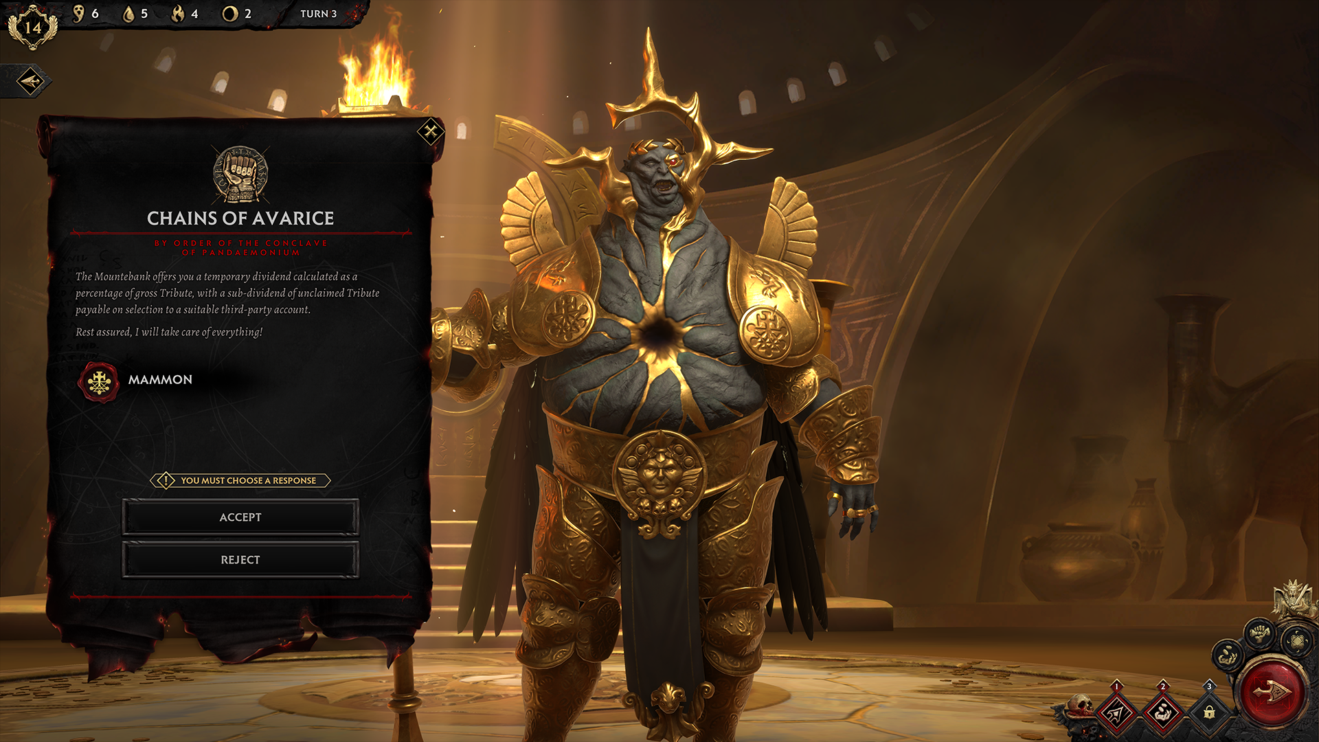 The diplomatic system in Solium Infernum is one of the largest systems in the game from a UX perspective, it required a lot of planning and thought to get right as there’s a lot of outcomes, rules to communicate and branches that can occur - below is an example of the wireframe workings of just the basic actions in the system, followed by examples of how individual screens in the flow appear in-game.